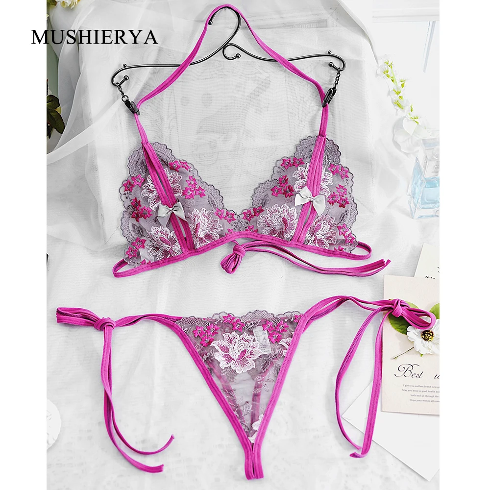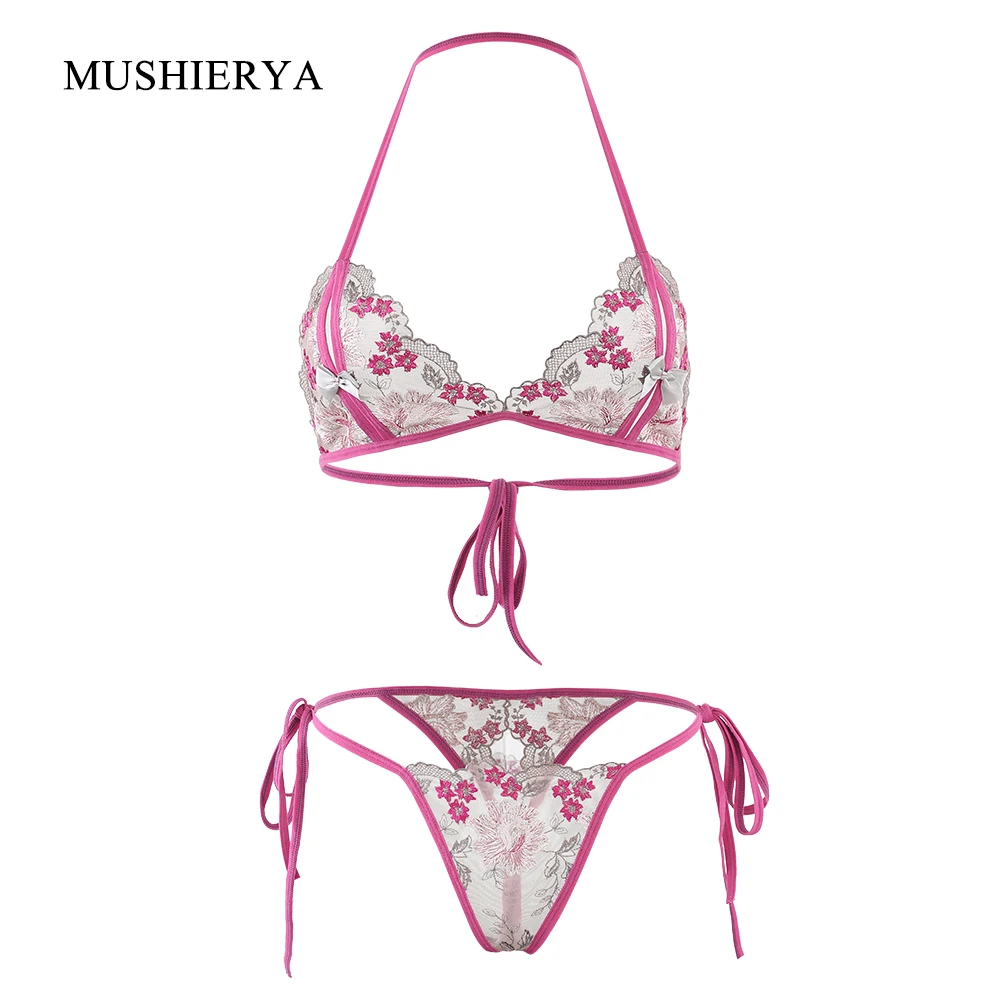 Good Price for MUSHIERYA Women Sexy Lingerie Underwear Set Lace Bra with Thong Brief Embroidery Floral Porn Erotic